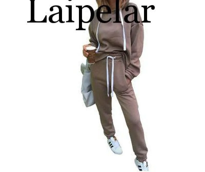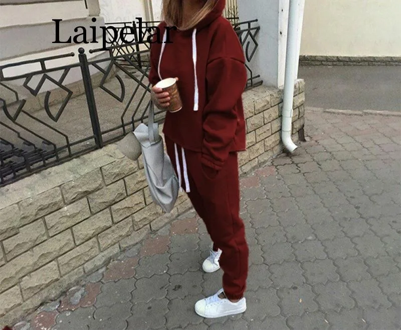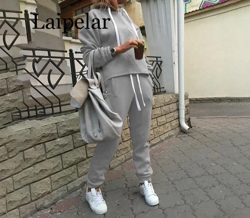 Images of New Hot 2pcs Set Hoodies Loose Hooded Tops Sweatshirt+Solid Long Pants 2 Pieces Sets Women Clothing Suits Female Tracksuit :