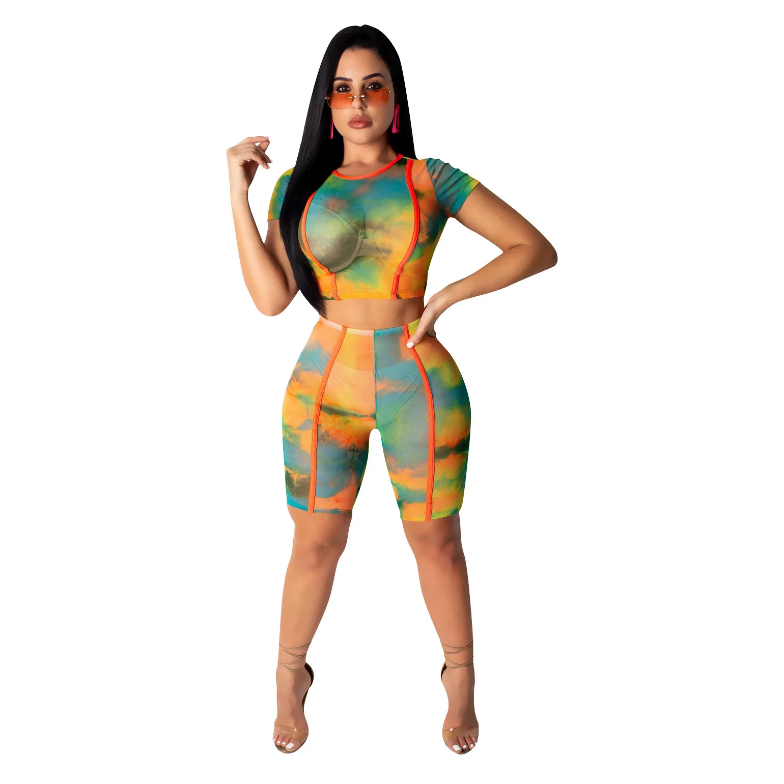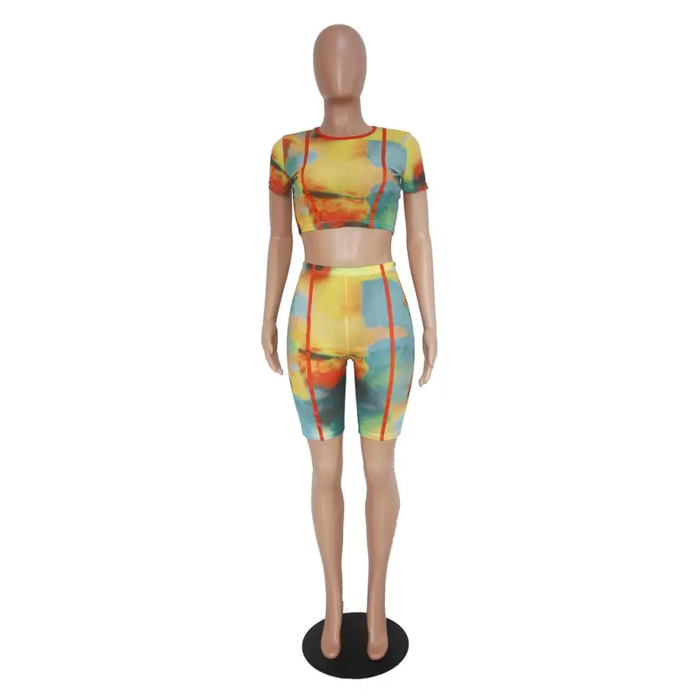 Promo Women Tracksuits Short Sleeves Crop Top Jogging Short Pants Sports Suit Outfit Set Casual New Workout Clothes F79