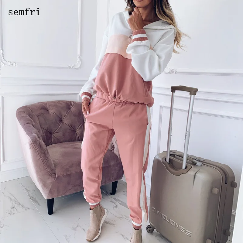 New Semfri Womens Tracksuit Leisure Sports 2 Piece Set Ladies Hooded Color Matching Fashion Suit Winter Casual Trousers Tracksuit