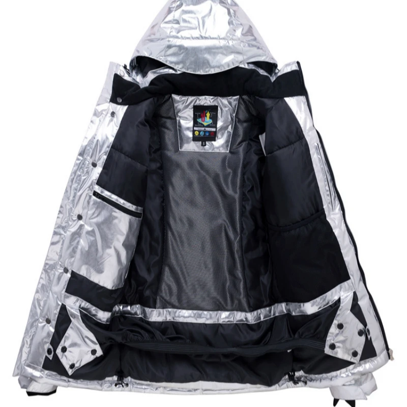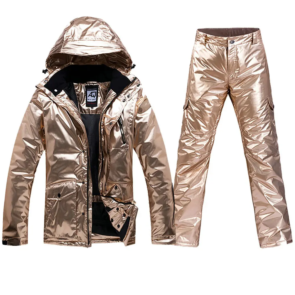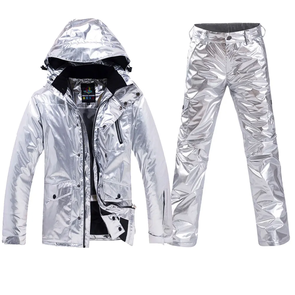 Images of Ski Jacket Women/men Waterproof Windproof Suits Silver Glossy Snow Jacket Coat Winter Couples Jacket Snowboard+Ski Pants Sets :