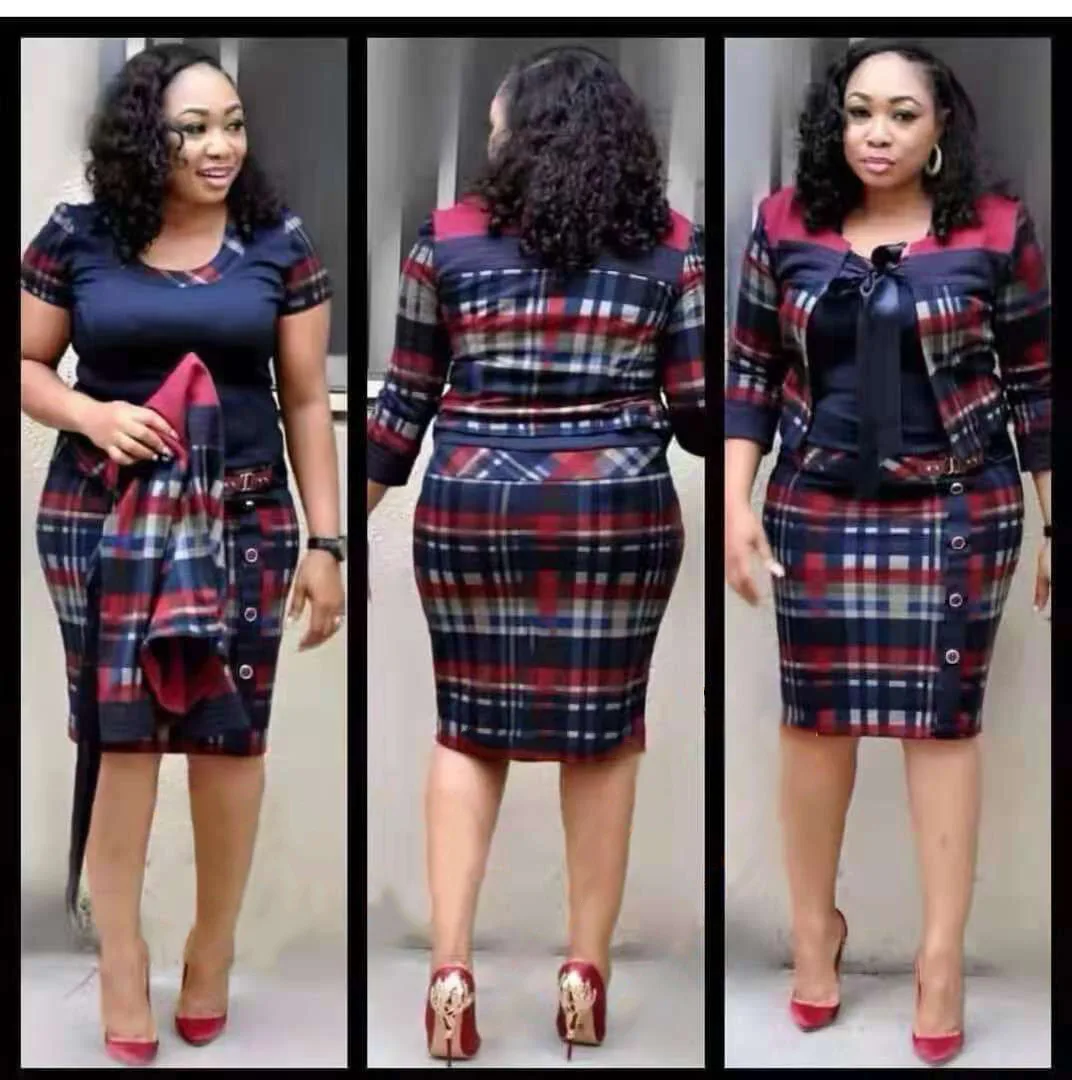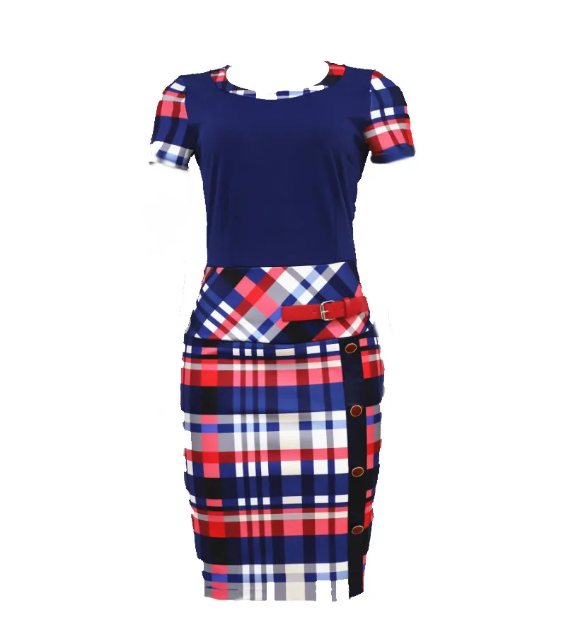 Get this Women Plus Size 4XL Office Work 2 Piece Set for Female Lady Plaid Print Short Sleeve Dress Elegant Casual Two Piece Outfits with limited time discount by pressing the button below