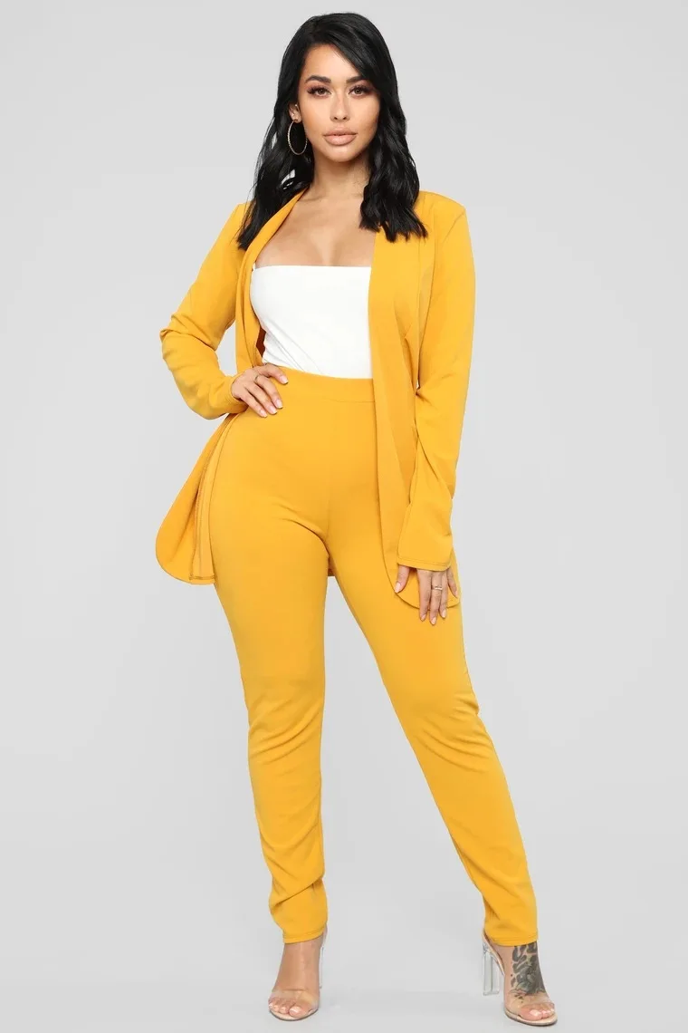 New 2020 New Sexy Women Blazer Suit Elegant +Trousers 2 Piece Ladies Pants Suit business Office Female Solid Formal Suit Plus Size