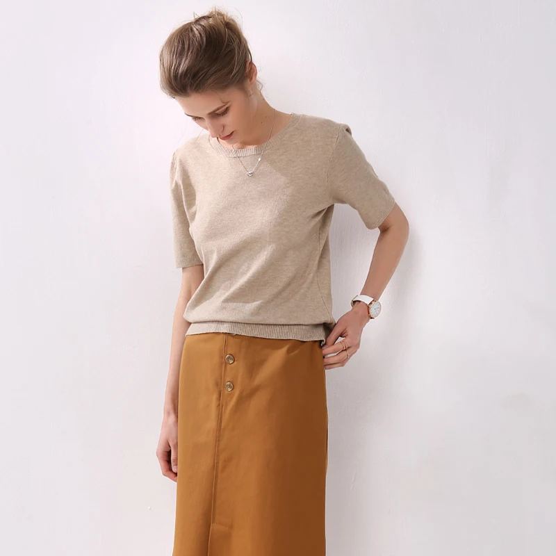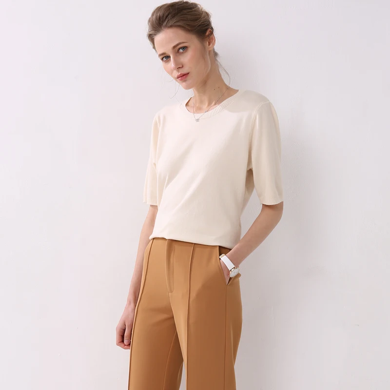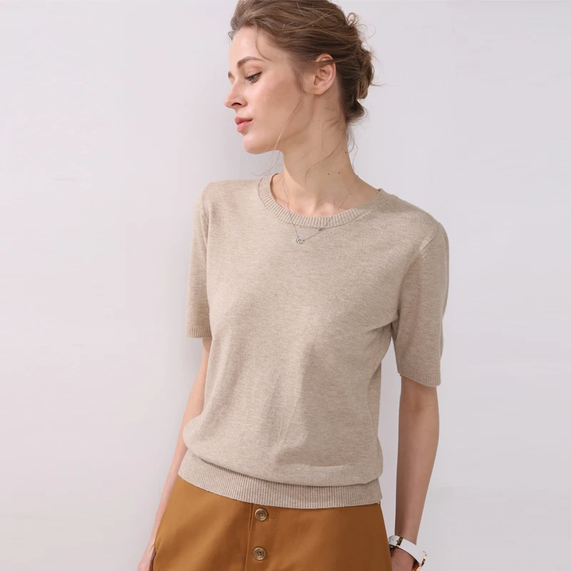 Best Offer 2019 spring and autumn women's large solid wool cashmere sweater short sleeve round-neck sweaters knit sweater computer oversize