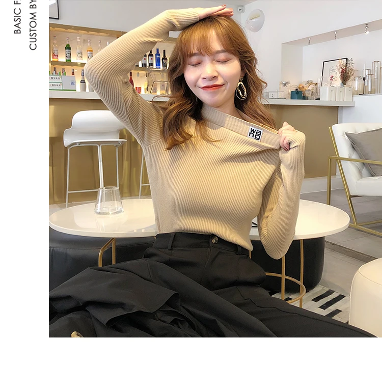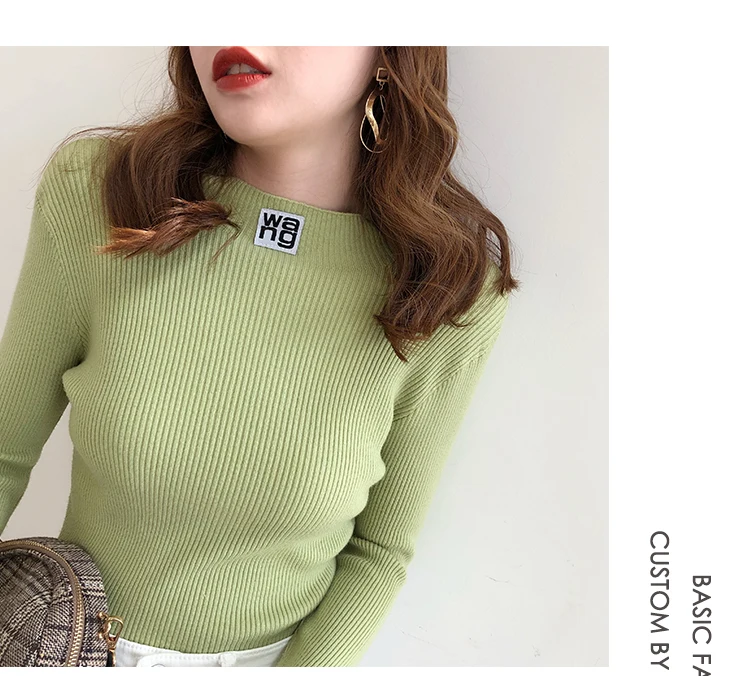 Images of 2019 Autumn Winter All Match Women Sweaters Slim New Pull Femme Fashion Half Turtleneck Pullovers Solid Appliques G1085 :