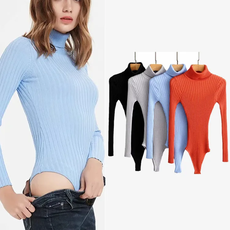 Images of 2019 Winter New Sexy Thread Ladies Turtleneck Sweaters Solid Color Long-Sleeved Women Knitwear Fashion Slim Tights Bodysuit :